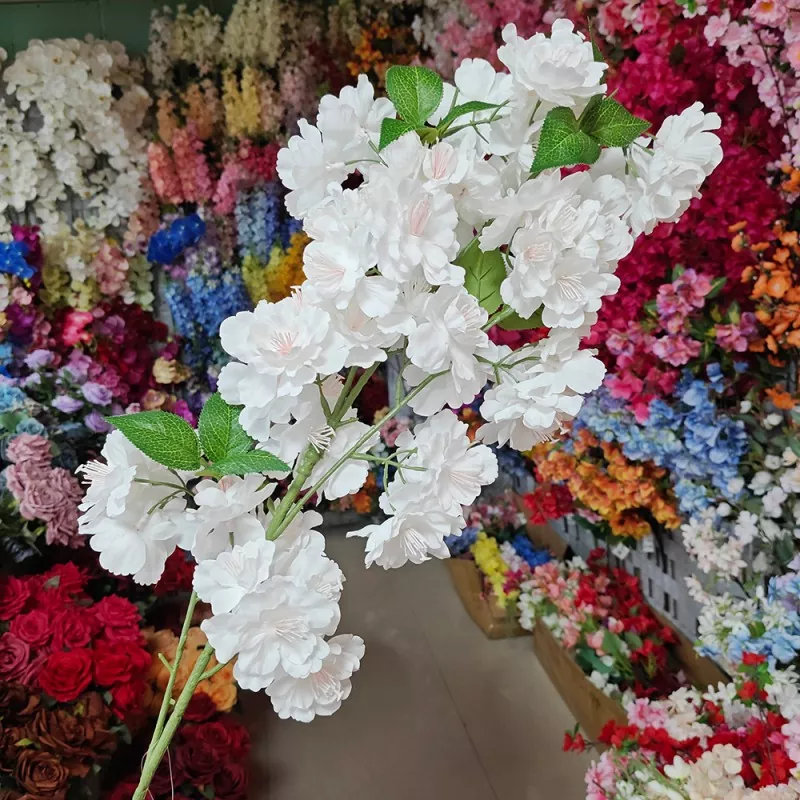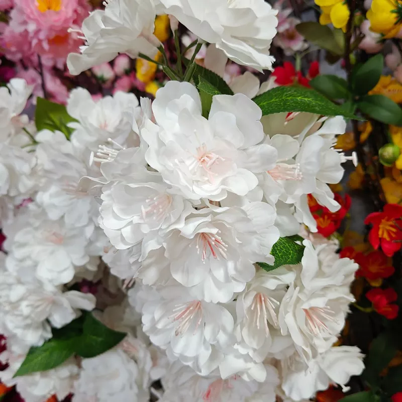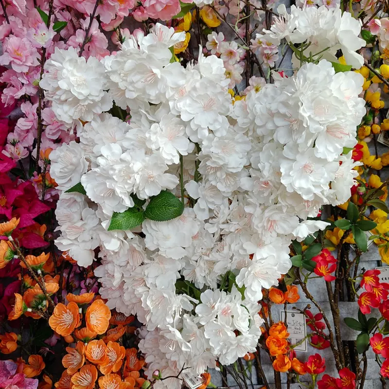 फ्लेम-रिटर्डंट व्हाइट चेरी ब्लॉसम कृत्रिम फुले