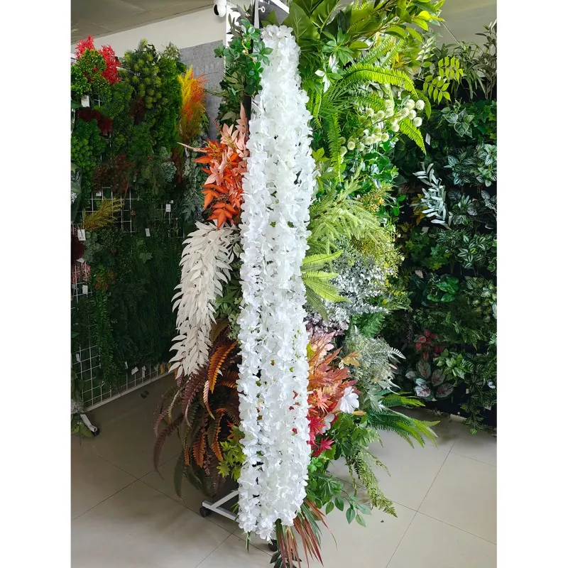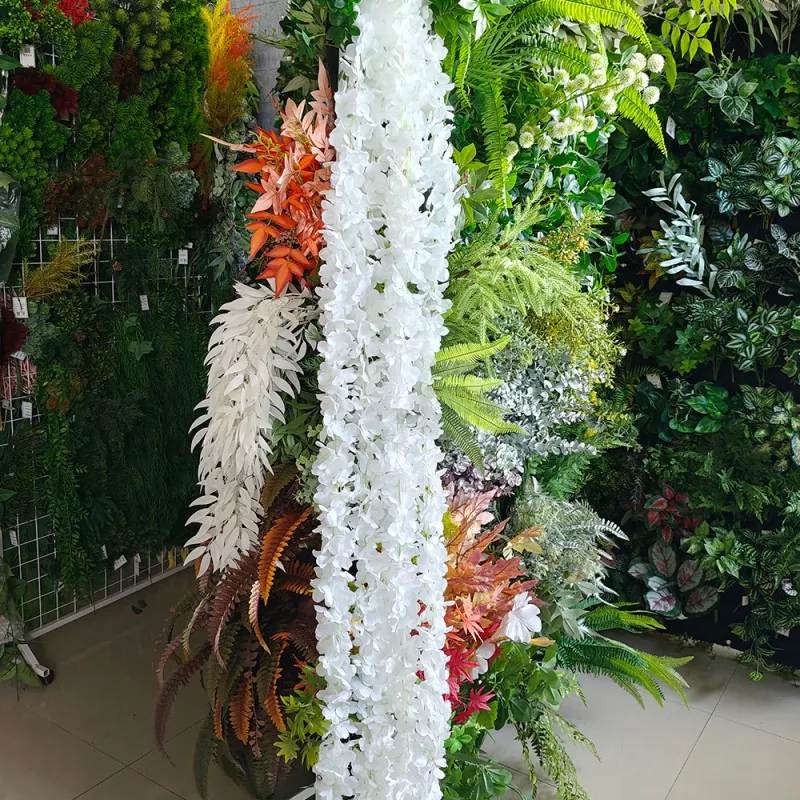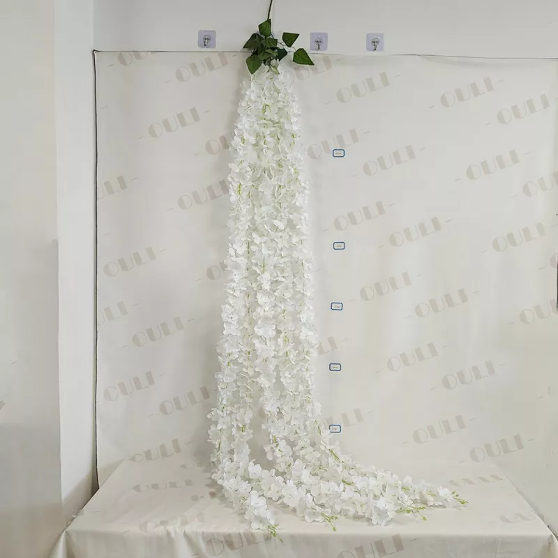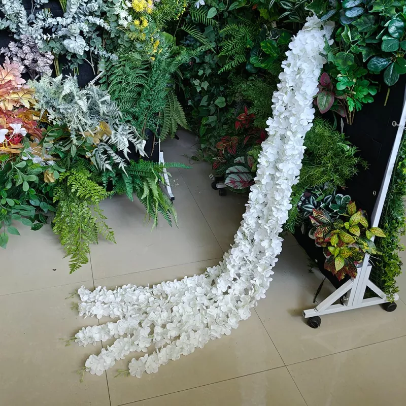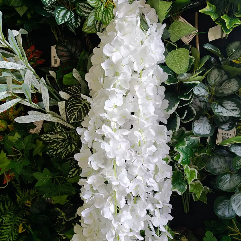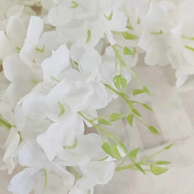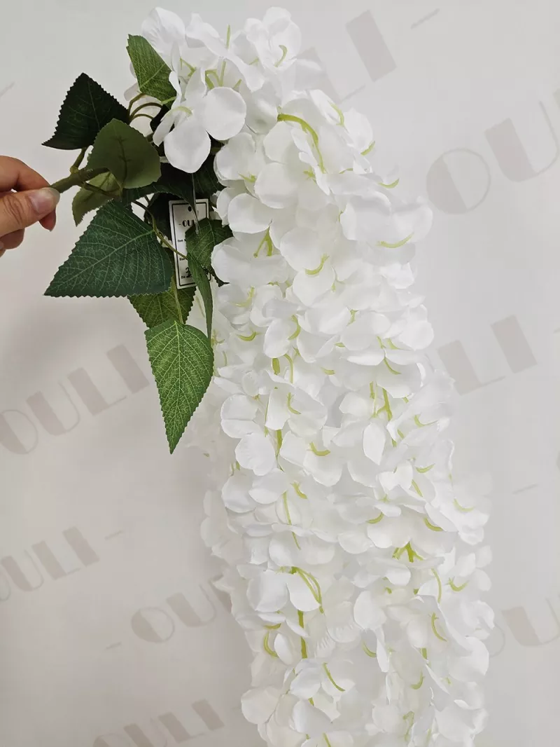 ही कृत्रिम विस्टरिया फुलं गारलँड 180 सेमी लांबीची आहे, ही एक अतिरिक्त शैली आहे. जोड्यांमध्ये वापरल्यास ते एका खोलीची संपूर्ण उंची व्यापू शकते.